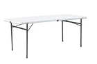Mainstays 6-Foot Fold-in-Half Folding Table – White Plastic Table with Carry Handle, Indoor/Outdoor Use Add convenience and functionality to any setting with this 72" Mainstays fold-in-half table. Designed for both indoor and outdoor use, it offers a spacious surface, easy portability, and a clean, modern look—perfect for events, gatherings, or everyday use. Key Features: Large Surface Area: 72" L x 30" W tabletop comfortably seats up to 8 adults—ideal for meals, crafts, or displays Fold-in-Half Design: Legs fold in, and the table folds in half for compact storage and easy transport Durable Construction: Made from strong, powder-coated steel and a resin top that resists wear, water, and stains Built-in Carry Handle: Integrated handle allows for easy transportation—great for on-the-go use Rubber Leg Caps: Provide extra grip and protect floor surfaces from scratches Classic White Finish: Neutral color fits effortlessly into any event décor Easy Maintenance: Simply wipe clean with a damp cloth Perfect For: Indoor/outdoor dining Crafting and workstations Tailgating, BBQs, parties, and school functions Garage sales, displays, and more Specifications: Dimensions (Open): 72" W x 30" D x 29" H Seating Capacity: Up to 8 adults Includes: 1 × Folding Table Material: Resin top with powder-coated metal frame Color: White A versatile and portable solution for any occasion—durable, lightweight, and ready when you are.