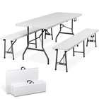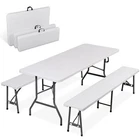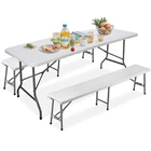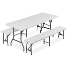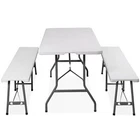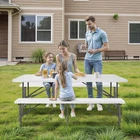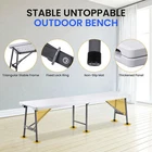 Ideal for family reunions, picnics, camping trips, buffets or barbecues. This table is great for entertaining and can be used as a serving table, game table, or outdoor dining table. Its collapsible design makes it quite space-saving. The high quality resin surface is waterproof, scratch, and impact resistant; making it perfect for all types of activities. Light grey powder-coated steel tube framing provides strong long-lasting use and lightweight portability The table legs fold under the table to make storage more convenient and for better portability. Specifications: Product size: 70.9"*27.4"*28.6" Product Weight: 11.6kg/25.6lbs Material: HDPE high density polyethylene The metal part is stainless steel plastic spraying 6FT Plastic Folding Bench Features: Quality Material & Easy to Clean: The portable outdoor folding bench is made of great material, which is waterproof, weather resistant, making it suitable for outdoor use. You can easily clean the panel. Safety Lock Ring & Non-slip Mat: The legs of the bench are secured with a locking ring design, while the triangular structure enhances overall safety and stability. The bottom of the folding stool has non-slip pads to prevent tilting. Folding & Portable: The bench is folded in half and has an internal snap design to prevent it from opening easily in transit. It does not occupy any space and has a handle on the top, which can be opened and used anytime and anywhere. And this camping dining seat is no assembly required, more convenience for you. Thickened Panel & Good Bearing Capacity: Our folding bench is thickened and supported by heavy steel pipe, making it more sturdy. It can hold up to 660 pounds, and the maximum number of people it can hold is: 4-5 people. Suitable for Indoor & Outdoor: Our benches have a wide range of ap plications and are ideal for any venue such as courtyards, gardens, parties, weddings, exhibitions, barbecues, potteries, etc. Specifications: Color: White Material: HDPE+Metal Item Weight: 17.52lbs Folding Size: 36.1"L* 12"W* 3.3"H Unfolded Size: 72.3"L*12"W*17"H Seat Tickness: 1.57" Weight Capacity: 661lbs