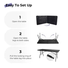 This folding table is a game-changer! Super sturdy and easy to set up—just unfold and it's ready in seconds. The HDPE top is tough and wipes clean easily, while the steel frame keeps it rock-solid. Love the anti-slip feet and gravity lock for safety. Perfect for parties, picnics, or extra workspace. Lightweight yet holds up to heavy use. No assembly needed—huge plus! Folds flat for compact storage. Highly recommend for anyone needing a reliable, portable table!