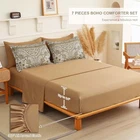 Return Policy Fast Delivery Trusted seller 7 Pcs Brown Comforter Set Queen Size Bohemian Bedding Sets Boho Bed in a Bag with Flat Sheet and Fitted Sheet Geometic Bedding Comforter Sets for All Seasons(Queen, 90''x90'') Product Description Package & Size: The brown boho comforter set queen complete set includes 1 Comforter (90" x 90"), 2 Pillow Cases (20" x 30"), 2 Pillow Shams (20" x 26"), 1 Fitted Sheet (60" x 80" + 14"), 1 Flat Sheet (102" x 90").The fitted sheet fits mattresses up to 14". Supreme Softness: Our bohemine bedding set is made with polyester microfiber. It’s super soft and silky. Skin-friendly fabric adds softness to provide you with exceptional comfort. The superior quality comforter is comfortable, breathable, and not easy to shrink.This bedding set was printed with bohemian floral pattern. Delicate Workmanship: The 7 Pieces bed in a bag pattern on this bed-in-a-bag set conveys a modern minimalist appeal that coordinates with various home decor styles, adding more aesthetic and coziness to your bedroom. The exquisite quilting process makes the filler even and not easy to agglomerate which can fix the quilt core. Easy Care: The bedding comforter sets are machine washable which can save us more time and energy. For year round softness and prevent pilling up, it's highly recommend to wash it in the gentle cycle with cold water, sun-dry or tumble dry in low when needed. Let our comforter sheets keep providing you and your family with cozy sleeping. Suits for All Seasons: Our comforter queen set offers amazing softness as well as exceptional durability and breathability, achieves perfect balance to be warm in winter and cool in summer, improves the quality of your sleep, keeping you cozy and warm sleep through every night for all seasons. Also, it is a great gift idea for all your loved ones on special occasions. Shipping Returns Payment Shipping Shipping is FREE to all addresses other than APO/PO boxes in the lower 48 states. All our stock ships from US-based warehouses. Shipped via USPS or UPS (depending on location and package weight) Unless stated otherwise, all orders will ship within 24-72 hours of your payment being processed. Check our feedback to see the great reviews of FAST shipping we offer. Returns Seller does not accept returns Payment We currently accept payment via eBay managed payments only. Once payment is cleared, we will dispatch your shipment within 1-3 business days. Please refer to the "Shipping" tab for more information regarding shipping speed to your destination.