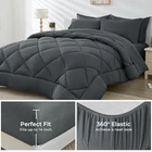 Return Policy Fast Delivery Trusted seller 7 Pieces Queen Comforter Set, All Season Reversible Bed in a Bag Queen, Ultra Soft Queen Bedding Set with Grey Comforter, Flat Sheet, Fitted Sheet, Pillowcases, Pillow Shams, Dark Grey Product Description Cloud-like Material: The queen comforter set is made of premium material, whether the comforter, bed sheet, or pillowcase, we all opt for upgraded 350 GSM premium microfiber, which is as soft as a cloud with no static electricity troubles or concerns Luxuriously Soft Fabric: Crafted from brushed microfiber, the queen bedding set delivers unparalleled softness. Its smooth, breathable texture ensures ultimate comfort while remaining whisper-quiet, allowing for a restful night's sleep Practical Details: The 360° elastic fitted sheet with a deep pocket fits most mattresses about 10"-14" deep. The baffle box construction of the comforter prevents the fiber fill from shifting, even after several times of wash 7-Piece Queen Bed in a Bag Set: The queen-size comforter set includes 7 pieces: 1 all-season comforter (88" x 88"), 2 pillowcases (20" x 30"), 2 pillow shams (20" x 26" + 2"), 1 flat sheet (90" x 102"), and 1 fitted sheet (60" x 80" + 14" deep) Easy Care Tips: All comforter sets are transported in exclusive cartons. Please machine wash in a gentle cycle with mild detergent, use dryer balls in the dryer to help distribute filling evenly. Remember to use a cool iron to help remove wrinkles Shipping Returns Payment Shipping Shipping is FREE to all addresses other than APO/PO boxes in the lower 48 states. All our stock ships from US-based warehouses. Shipped via USPS or UPS (depending on location and package weight) Unless stated otherwise, all orders will ship within 24-72 hours of your payment being processed. Check our feedback to see the great reviews of FAST shipping we offer. Returns Seller does not accept returns Payment We currently accept payment via eBay managed payments only. Once payment is cleared, we will dispatch your shipment within 1-3 business days. Please refer to the "Shipping" tab for more information regarding shipping speed to your destination.