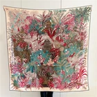$ 6.5100% Pure Silk 21'' Scarf Women Beige Gray Flower Kerchief Small Square Bandana