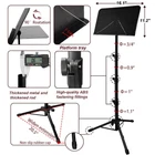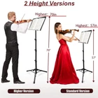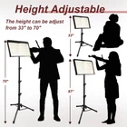 Specifications: Item name: Sheet Music Stand Material: Metal Height Adjustable: 33" to70" Bookplate Size:16.1×11.2" Package weight: 1.8 lbs Package list: 1 × Sheet music stand 1 × Carrying bag 【70IN Taller Music Stand】This height of music stand can be adjust from 33" to 70" to accommodate players of different ages and heights, whether playing while sitting or standing. You won’t need to bend over to see the music sheet any more! 【High Stability】We've upgraded the structure of the music stand and the maximum diameter of the tubes is 1-1/8" (ordinary diameter about 1/2"- 3/4"), greatly improving its sturdiness and stability 【Adjustable Angle】Metal bookplate can be easily adjusted to a comfortable viewing angle to meet your needs in different occasions. The 1-1/4" deep tray is enough to hold any type of sheet music or books. 【Easy to Assemble and Carry】The portable music stand come with a carrying bag for easy carrying and storage, and the lightweight and easy detachable design allows you to install quickly and carry it around 【Stable Tripod Base】- The sturdy metal tripod of the music sheet stand is stable and not easy to fall over, and non-slip rubber cover at the bottom to prevent floor scratching.
