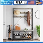 💓Multifunctional Hall Tree: The design of hooks, shoe rack, and drawers make your home tidy. The removable hooks are great for hanging your clothes when you back home. Also, shoe storage is very convenient for families to storage their shoes when coming back or going out. 💓Stable& Safe: The entryway hall tree is made of strong metal frame, sturdy particleboard, adjustable screw-in protective feet, and with extra anti-tip kits belt. These exquisite workmanship makes the standing coat rack perfectly stabled on uneven ground without floor scrapes and scratches, and prevent it from falling to keep safety of the family. 💓Easy Assembly: The assembly instructions are very detailed. And all necessary hardware & tools are included in the package. You will get a perfect clothes rack very fast. Also, If you have any questions when installing this coat rack, please feel free to contact us, and we will try our best to help you! 💓Dimension: The size of our hall tree is 39.97” L x 15.7” W x 72” H. Please check your measurement before purchase. Once assembled, Each hook can hold up to 6.6 pounds and the shoe bench can hold 300 pounds. 💓What's Included: Coat Rack, Shoe Bench, Adjustable feet, Hanging Bar, Floating Shelf with Mounting hardware, Easy-to-follow instructions and 24/7 service. Product Description Payment Delivery details Terms of sales About us Contact us Payment We accept payment either via PayPal or any of the following credit cards; Visa, MasterCard, Discover, and American Express. Wishing you a happy life! Delivery details We will provide you with the tracking number on the same day or the next day, and transport your package through UPS, DHL, FedEx and other courier methods. If you have any questions, please feel free to contact me and I will do my best to help you solve the problem. Wishing you a happy life! Terms of sales We offer a one month free return and exchange service, and you don't have to bear any losses. We will provide multiple solutions for you to choose from. If you have any questions, please feel free to contact me and I will do my best to help you solve them. We offer a two-year warranty period. If you have any quality issues with the product you purchased within two years, please feel free to contact me. I will provide you with a free replacement service. If you have any questions, please feel free to contact me. I will do my best to help you solve the problem. Wishing you a happy life! About us We are committed to becoming the best eBay seller, with high-quality suppliers, providing the most sincere service, including pre-sales and after-sales service, to give you a satisfactory shopping experience. If you have any questions, please feel free to contact me, and I will do my best to help you solve the problem. Wishing you a happy life! Contact us If you encounter any problems, please contact me by email at the first time, I will provide you with a solution as fast as possible so that I can give you a satisfactory shopping experience, wish you a happy life! Brand grvee Type Coat & Hat Racks Material Wood, Iron, Metal Mounting Free Standing Product Dimensions 45.67 x 17.52 x 4.92 inches 45.67 x 17.52 x 4.92 inches Item Weight 44.3 pounds Manufacturer Warranty 5 Years