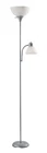 The JK1660SLV combination floor lamp is two lamps in one, featuring a 100-watt main lamp with an additional 60-watt reading lamp (light bulbs not included). This sturdy yet slim 72" plastic lamp includes an attached reading lamp with an adjustable gooseneck, two plastic shades for a subtle ambient effect, and a 9" diameter plastic base. The main top light is controlled by a 3-way rotary switch and a simple on/off switch for the bonus reading lamp. The sleek and modern design makes this lamp a perfect addition to any adult living room, bedroom, or adult home office and a must-have for young adult college living spaces. 72" JK1660SLV floor lamp 3-way rotary light for main light source 100W and 60W bulbs required (not included) Additional reading light has a convenient on/off switch Reading light features a flexible arm Plastic shades absorb light intensity as it is needed Available colors black, silver, brown, white Modern finish complements the decor of most living areas Ideal for bedrooms, adult home offices, dens, dorm rooms On Jan 8, 2025 at 02:29:44 PST, seller added the following information: