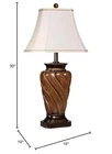 Transitional Table Lamp- Toffee Wood Finish - White Fabric Shade This piece measures as 10"L x 15"W x 30"H - 15lbs. Crafted from: Poly, Fabric Suitable for any indoor location Requires 1 x 75-watt E26 Medium base Incandescent bulb (not included) - 120V Shade measures as 10"L x 15"W x 11"H