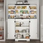 【Plenty of Storage Space】Featuring 2 large cabinets, a large slide-out drawer, and 6 door shelves, this pantry cabinet can hold everything from food and dishes to kitchen utensils, no matter where you place them. 【Elevate Storage Experience】The height of the kitchen storage cabinets is coordinated with the convenience of the average adult and is easy to use. The wide coated metal handle not only provides a comfortable grip but also ensures durability for continued use.The included wall anchor kit prevents tipping and ensures safety. 【Adjustable Shelves and Drawers】This freestanding cupboard has three adjustable shelves and one fixed shelf ensure you always have space for whatever you need stored. Comes with 1 drawer to help you hide items. 【Versatile Storage Cabinet】This versatile kitchen cabinet is the storage solution for any room; perfect for the kitchen, living room, bathroom, or den; its modern, minimalist design enhances any decor while keeping your space neat and organized. 【Easy to Assemble】Kitchen pantry storage cabinet includes labeled parts and easy-to-follow illustrated instructions; please feel free to contact us with any assembly questions and we will respond within 24 hours.