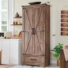 $ 416.0672 Inch Large Kitchen Pantry Storage Cabinet with Barn Doors and Drawers