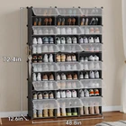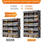 72-Pair Portable Shoe Rack Organizer,DIY Shoe Storage Cabinet for Entryway,Stand up Closet with Door, Plastic Adjustable Shoe Organizer Stackable Detachable Free Black 【Multifunctional Storage】 Portable shoe rack The overall size is 48.8x12.6x72.4inch. Each cube storage system measures 15.7x 11.8" x11.8. Providing significantly more width and depth than similar products. With this size, you can store up to 72 pairs of standard-sized shoes with ease. 【Detachable partition】This shoe rack center dividers are removable to accommodate tall basketball sneakers, high tops, or boots. Additionally, the door panel can be removed to showcase your shoe collection. 【Versatile Use】Beyond shoe storage, this organizer is perfect for keeping clothes, accessories, bedding, books, and toys tidy. It's ideal for use in living rooms, bedrooms, studies, porches, offices, and other areas to maintain a clean and organized space. 【Easy Assembly】With a free DIY spirit, assembling and disassembling this unit is a breeze with the provided detailed instructions. Please note that custom shapes may result in missing or extra parts. It includes multi-angled ABS plastic connectors for a secure build. Gloves are recommended during assembly to protect your hands from scratches. 【Maintenance】This shoe organizer storage is made from PP plastic. The waterproof panels are simple to clean, ensuring long-term storage needs are met. A specially designed air circulation door hole helps prevent odors by promoting air flow.