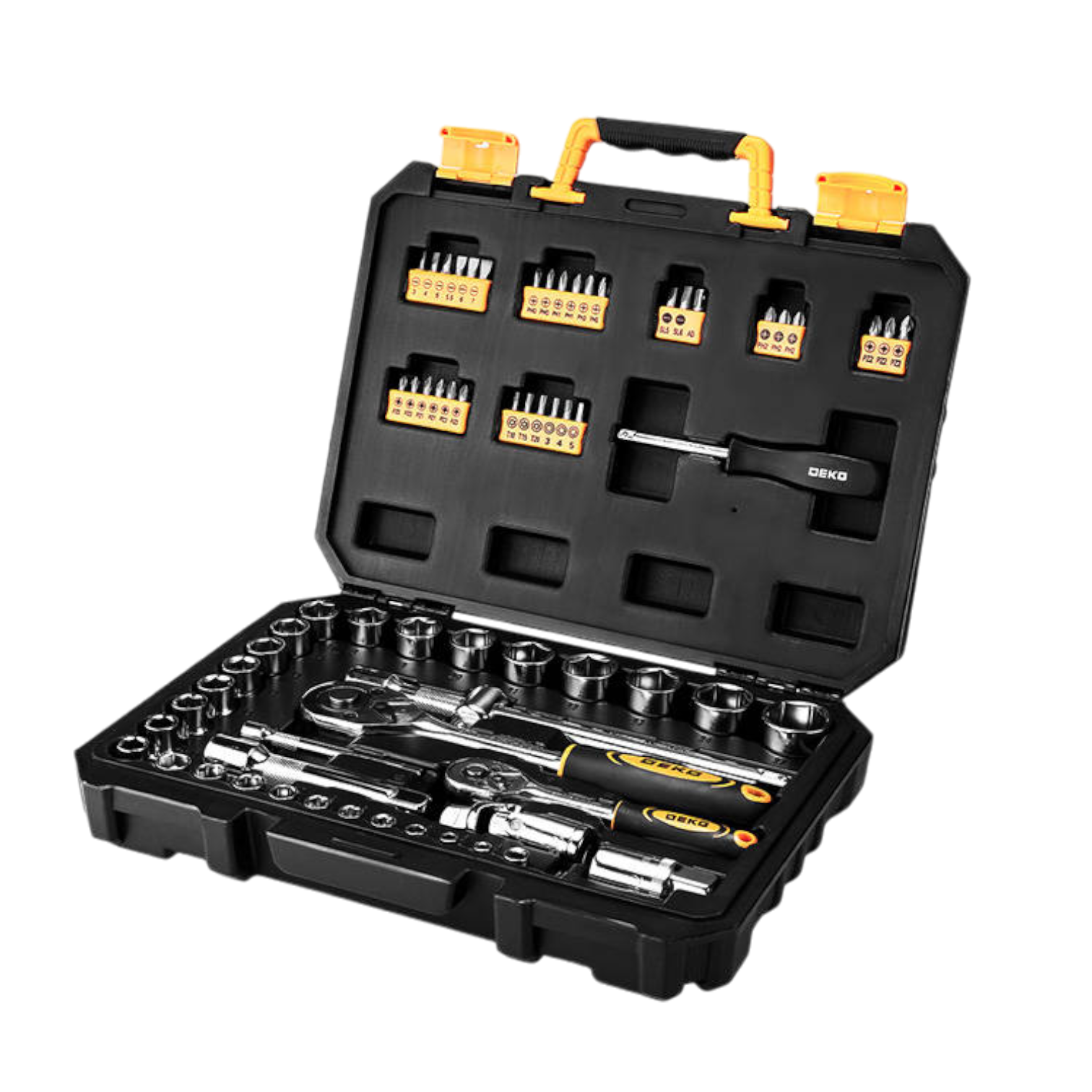 Tool Box, Hand Tools Set Deko 72 Piece Inbusschlüssel Ratchet Socket The description of this item has been automatically translated. If you have any questions, please feel free to contact us. Deco tools hand tool set DKMT72 The practical decoration tools DKMT72 tool set is ideal for every home and makes repairs and home improvement work easier. It contains up to 72 elements that are characterized by their solid processing and versatile use. The tools are packed in a practical, handy box that enables easy storage and transport. In the set you will find a 1/4 "pocket holder, a ratchet, Allen key, extension rods, a triple head and much more. Versatile tools In this set you will find up to 33 25l bits, ten ¼ "Pins and 16 ½" socket. In addition, there are three Allen keys, two ratchets, a kordangel, a ¼ "socket holder, a ¼" clutch, three extension rods as well as a spark plug-in socket and a trim-back head. All tools are housed in a handy and robust tool case, which you can easily take with you anywhere. Included in the set 1x 1/4 "Pet nut holder 33 x bits 25l 10 x pins 1/4 "4, 5, 6, 7, 8, 9, 10, 11, 12, 13 mm 16x pins 1/2 "10, 11, 12, 13, 14, 15, 16, 17, 18, 19, 20, 21, 22, 23, 24, 27 mm 1x clutch 1/4 " 3x Allen key 1.5, 2, 2.5 mm 3x extension rods 1/4 "X4", 1/2 "X5", 10 " 1x Kardangelenk 1/2 " 2x ratchet 1/4 ", 1/2" 1x spark plug pocket 1/2 "x 21 mm 1x 3-fold pin-wing head 1/2 " Manufacturer Decoration tools name Deco tools tool set DKMT72 Model DKMT72 Number of elements 72 The practical decoration tools DKMT72 tool set is ideal for every home and makes repairs and home improvement work easier. It contains up to 72 elements that are characterized by their solid processing and versatile use. The tools are packed in a practical, handy box that enables easy storage and transport. In the set you will find a 1/4 "pocket holder, a ratchet, Allen key, extension rods, a triple head and much more. In this set you will find up to 33 25l bits, ten ¼ "Pins and 16 ½" socket. In addition, there are three Allen keys, two ratchets, a kordangel, a ¼ "socket holder, a ¼" clutch, three extension rods as well as a spark plug-in socket and a trim-back head. All tools are housed in a handy and robust tool case, which you can easily take with you anywhere. 16x pins 1/2 "10, 11, 12, Recommended products Provided by Yato Metal Toolbox Black Tool Case Tool Box Quick Release View item Herstellernummer DKMT72 Marke Deko Produktart Werkzeugkiste EAN 6974491588153