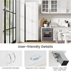 Product Description About this item Clutter-free Storage Solution: The storage cabinet features 5 storage shelves to enlarge storage capacity and classify daily supplies, such as books, documents, and kitchen utensils, capable of catering to different needs. Plus, this double door cabinet gives you ample private storage space, thus to keep a neat and tidy room. Customized Storage Space: The storage organizer comes with 3 fixed shelves and 1 adjustable shelf for flexible usage. Moreover, the shelf can be adjusted in 4 positions freely, which makes it easier to accommodate a variety of different sized items. And you can remove the partition to be a large storage shelf. Ultra Stable & Rugged Structure: Made of thick engineered wood and MDF, our floor cabinet shows perfect performance in lasting durability. Besides, equipped with anti-toppling device, the pantry cabinet can be fixed to the wall to prevent wobbling or tipping over. 4 heavy-duty support legs further enhance stability. Modern Style & Versatile Use: With modern style and elegant appearance, this freestanding storage cabinet adds refined sensation to your home and matches seamlessly with interior decoration. The utility storage organizer is an ideal choice for living room, bathroom, kitchen or any other space. All for Your Convenience: Metal handles are easy to open and close the door while magnetic door catch keeps the cabinet closed firmly. Under the detailed guidance of instruction, you can put all parts together effortless. The smooth surface will not take you too much time and effort in daily clean-up and maintenance.