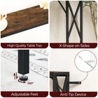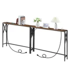 console table mixes modern metal and retro wood appearance Handy Charging Station: Low on battery for your phone? Don't worry, sofa table with charging station set of two can easily solve your urgent needs. With 2 outlets and 2 USB ports, it can easily handle charging for lamps, phones, tablets etc. Charming Style: The rustic brown panel complemented by iron metal, plus the X-shaped iron frames on both sides, this console table shows an industrial feel, letting you able to place delicate ornaments on the top to decorate your home Versatile Uses: This entryway table set sizes 39.4"L x 5.9"W x 28.9"H, ideal for use in the living room as a sofa side table to fully utilize the narrow gap between the sofa and the wall or as an entrance table to place keys, helmets etc Sturdy Structure: This behind couch table is made of a metal frame and quality particleboard with crossed iron frames on both sides and 2 iron pieces below the top to ensure the stability. 4 adjustable feet and the anti-tip kit double the security Time Saving: The package includes clearly labeled parts, easy-to-read instructions and the necessary tools. The hallway table is reversible and the accessories are universal, allowing you to easily assemble and enjoy it in a instant