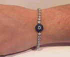 Main Stone Creation: Simulated Color: White Setting Style: Prong Main Stone Length: As per picture Signed: No Main Stone Width: As per picture Charm Type: Snap Country/Region of Manufacture: India Main Stone Depth: As per picture Material: Stone, Metal Features: Engraved Occasion: Anniversary, Birthday, Christening, Christmas, Engagement, Graduation, Mother's Day, Valentine's Day, Wedding Era: Undated Main Stone Treatment: Not Enhanced Chain Type: Cable Item Length: As per picture Main Stone Shape: Round Personalize: Yes Main Stone: Sapphire Handmade: Yes Cut Grade: Excellent Country of Origin: India Style: Tennis Gemstone Clarity Grade: NA Base Metal: Sterling Silver Shape: Round Sizable: Yes Theme: Beauty Metal: Sterling Silver Seller Warranty: Yes Main Stone Color: Blue Metal Purity: 925 Closure: Snap Secondary Stone: Diamond Vintage: No Wholesale: Yes Customized: Yes Type: Bracelet Number of Gemstones: As Per Picture Brand: karunas-76 Antique: No