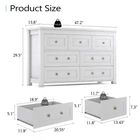 Ample Storage Space:This 7 drawer dresser for bedroom has large storage capacity, it features a spacious tabletop and 7 wide drawers. You can use it to store or display daily essentials, plants, decorative crafts, dishware, drinks, books, clothes, etc. Sturdy Wooden Dresser:Made of durable engineered wood and equipped with smooth metal runners on each drawer, which make dresser scratch-resistant and wear-resistant, easy to push and pull.Extra support underneath for the dresser and each drawer makes it more stable. Style:Wooden dresser for bedroom combination of modern and farmhouse style, adding character and charm to your bedroom and living room. Multi-Purpose Use:This wooden chest of drawers dresser can be treated as buffets & sideboards in dining room and kitchen, or as console table in hallway and entryway, it also works great in bedroom, nursery and living room. Easy to Assemble:easy-to-follow instructions and assembly tools provided. A detailed instruction manual are provided.If you have any questions, please feel free to contact us.