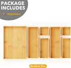 7 DRAWER ORGANIZER BOXES - Keep your drawer neat and organized with these bamboo drawer organizer boxes; SIZE: MINI (3"W x 3"D x 1.9"H); SMALL (3"W x 6.8"D x 1.9"H); MEDIUM (3.5"W x 10.5"D x 1.9"H); LARGE (7.7"W x 11"D x 1.9"H) MULTI-USE STORAGE HOLDERS - Declutter with our versatile kitchen drawer storage bins; Also perfect for organizing office supplies, bathroom essentials, makeup brushes, or jewelry KITCHEN UTENSILS STORAGE - Designed to hold silverware, utensil, flatware, cutlery, spoons and knives; The bamboo organizer for kitchen storage organization is 1.9" High; MEASURE YOUR DRAWER HEIGHT FIRST STURDY CONSTRUCTION - Made of durable solid bamboo; Sturdy enough to hold different sizes utensils and cutlery; Live an organized and sustainable life with this bamboo silverware tray for drawer EASY TO FIND IN DRAWER - Identify drawer contents instantly with this multi-functional kitchen wood drawer organizer set; You can use them as a nightstand or vanity organizer to keep your items tidy SpaceAid 7-Piece Bamboo Drawer Organizer Storage Boxes Set, Wood Tray Junk Drawer Organizers Multi-Use Divider Bins for Kitchen, Bathroom, Office Desk and Makeup Organization (7 Pack, Natural)