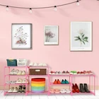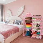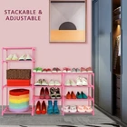 7 Tier Large Shoe Rack 24 -30 Pairs,Pink Tall Shoe Organizer Shoe Stand,Metal Stackable Boots Organizer Long Shoe Shelf Holder,Cute Kids Shoe Tower For Garage Closet Entryway 【24-30 Pairs Large Shoe Rack】- This 7-tier tall shoe rack designed with different height,can hold up to 18-22 pairs of sneakers /heels and 4-6 pairs of boots.With this tall shoe rack for bedroom closet or entryway, you can keep your home away from mess. 【Upgraded Heavy Duty Structure】- The sturdy shoe organizer is made of stronger 13mm pink powder-coated metal tubes and premium widen PP connectors.Each layer consists of 4 thick metal tubes,which give this pink shoe tower good stability and load much heavier duty and more serviceable. 【7 Tier Vertical Design and Space Saving】- Size:Size:33.4”L x 12.2”W x 42”H.The kids shoe shelf helps you maximize your vertical space.This standing shoe rack issuitable for hallway,foyer,garage,bedrooms, or larger entryways and closets.Featuring a compact stackable profile and fully open,allowing you to quickly locate the right pair with ease! 【Easy to Assemble】- We provide detailed installation guide and rubber mallet to help you easily assemble the zapateros organizador.This stackable shoe rack is not only for shoes, It could be a organizer shelf for your toys, storage baskets, plants and more. 【Cute Full Pink Design】- This new shoe rack organizer is painted in pink all over, it looks petite and pretty, pretty pink is the girl's favorite,the pink color design is great for girl’s closet and bedroom. An attractive shoe storage rack for your daughter, granddaughter and girlfriend and wife.