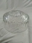 Set of 3 decorative clear glass bowls with starburst and diamond pattern. The only Hallmark I am able to identify is U.S.A on bottom Large serving bowl is 8 inches across top and two smaller fruit bowls are 4" across Very nice