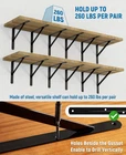 Store New Arrivals Add to Favorite View Feedback Contact 8 Pack 14 Inch Shelf Brackets & Supports Large Wall L Brackets for Storage Description Size Name 14 Inch Batteries Required? No Finish Power Coated Mounting Type Wall Mount Color Black-8 Pack Material Steel Item Depth 14 inches Item Weight 9.94 pounds Batteries Included? No Color Name Black-8 Pack Size 14 Inch Finish Type Power Coated Package Dimensions 14.68 x 10.98 x 4.8 inches PERFECT FIT: This L shelf brackets fit the nominal 14” - 18” deep lumber board, measure 14” x 9-3/4” x 1” HIGH QUALITY: Unlike the normal painting material, power frosted black coating ensure its rust-resistance and anti-coating off HEAVY DUTY: Each heavy duty steel shelf bracket with upgrade quality screws carry up to 130lb, enough for daily use (260lb per pair) ALL-MATCH STYLE: Maximize space with with style. Fit for the kitchen, bathroom, bedroom, office & more. Product Description 90° RIGHT ANGLE Every single bracket quality checked with a 90-degree right-angle. COUNTERSUNK HOLE New Screw holes design improving the finish of the product and removing any hazardous sharp edges. ARGON PROCESS Provides a smooth surface and makes it resistant to corrosion and rust. Easy to maintain. ABOUT US We offer the best prices around on high quality products. Our E-store includes media such as books, movies, music and games while offering electronics, toys, sporting apparel, clothing, tools, general home, garden items and more. SHIPPING We are always working hard to ensure your package arrives as soon as possible. Please understand that some factors like weather, high postal traffic, and the performance of shipping companies are outside of our control. We offer free shipping to the lower 48 states and ship within 2 business days of payment, usually sooner. We do not accept P.O. Boxes. Please provide a physical address. RETURNS We offer a 30-Day Return Policy on items which you are not completely satisfied with. You have the option for a full-refund or an exchange of the item. No returns are available on items shipped outside of the USA. PAYMENT We accept PayPal. CONTACT US This page content is yet to come Please ad us to your favorite seller and visit again later Thank You CUSTOMER SATISFACTION We try our very best to make sure every customer is completely satisfied. If there's a problem, message us! We're happy to help.