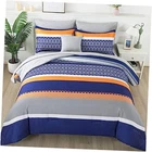 Return Policy Fast Delivery Trusted seller 8 Pieces Bed in a Bag Stripe Comforter Set Queen Size,Blue Patchwork Striped Comforter with Sheets Set Soft Microfiber Boho Bedding Sets (Blue,Grey) Product Description 【Bed in a Bag Comforter Set】8 pieces queen size bed in a bag includes 1 comforter(90"×90"),2 pillow shams(20"x26"),2pillowcases(20"x30"),1fitted sheet(60"×80"+12"),1 flat sheet(90"×102"),1 decor pillowcase(15"×15"). 【Modern Reversible Striped Design】Reversible stripe comforter set design combines with boho pattern.A side is blue grey orange stripe pattern,B side is elegant grey.Striped design with a boho pattern to add bedroom into classic and modern style. 【Premium Material】Stripe bedding set is made with premium quality microfiber which provides superior breathability and softness for exceptional durability.Soft microfiber bedding set keeps you pretty and warm sleep through every night. 【All-Season Using】Patchwork striped comforter's weight is ideal for year-round use. The bedding comforter set keep you warm in the winter and fit to use in the summer. 【Easy to Care】Queen comforter set easy to care and clean with mild detergent. Wash the reversible comforter set separately in cold water. Air dry or tumble dry on low heat. Shipping Returns Payment Shipping Shipping is FREE to all addresses other than APO/PO boxes in the lower 48 states. All our stock ships from US-based warehouses. Shipped via USPS or UPS (depending on location and package weight) Unless stated otherwise, all orders will ship within 24-72 hours of your payment being processed. Check our feedback to see the great reviews of FAST shipping we offer. Returns Seller does not accept returns Payment We currently accept payment via eBay managed payments only. Once payment is cleared, we will dispatch your shipment within 1-3 business days. Please refer to the "Shipping" tab for more information regarding shipping speed to your destination.