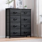 About this item Fabric MULTIFUNCTIONAL TALL DRESSER- DWVO dressers complement diverse decors with large storage space; Perfect for bedroom, closet, dorm, entryway, hallway, living room, office ROOMY FABRIC DRESSER- 8 deep foldable drawers are spacious enough to hold your clothes and daily necessities; Large wooden top is great for showcasing your lamps, clocks, glasses, photos, etc. STURDY STORAGE TOWER- Strong metal frame aptly supports the overall structure; Premium MDF wooden top plus non-woven synthetic fabric increases durability 8 DRAWER CHEST- This dresser for bedroom features portability and a foldable design with easy-to-pull handles, allowing for quiet open & close; Folds flat for convenient storage and relocation SAFETY FIRST- Minimal assembly required with easy-to-read instructions, safety kit, and accessories included; Wall anchoring is recommended to prevent tipping; Overall size: 33.7''L x 11.7''W x 38.4''H; Drawer dimensions: 15.6''L x 11''W x 8.5''H This Dresser with 8 Drawers is a versatile storage tower perfect for organizing your bedroom or hallway space. The dark black wood grain color and metal fabric wood material give it a stylish and modern look. With 8 drawers of various sizes, this chest of drawers offers ample storage for your clothes, shoes, or other items. The assembly required from the included components and accessories ensures a sturdy and portable piece of furniture. Made in the United States, this dresser is a practical and functional addition to any home decor.