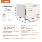 Product Description Get warm and comfortable towels! Our towel warmer cabinet with a large 8L capacity, accommodates up to 16 face towels. With uniform heating from all sides, it ensures more efficient heating. Equipped with a UV light and an aluminum oxide interior, it's built to last, making it suitable for a wide range of uses. Spacious Capacity The 8L hot towel warmer includes stainless steel racks, an instruction manual, and a clip. It can hold to 16 standard-sized towels, allowing you to save time by avoiding multiple heating cycles. It's efficient and convenient, making heating process both time-saving and hassle-free. Superior Heating Performance Experience quick towel warming with the all-side heating system. The 360° even heating function can warm your towels to a cozy 150-180°F within just 10 minutes! With UV Light We've included a powerful 3W UV light that efficiently cleans your towels. This not only ensures a cleaner and safer experience but also leaves your towels feeling softer and more comfortable to use. Premium Interior The hot towel cabinet boasts an enhanced aluminum oxide interior for improved heat conduction, ensuring even heating of both traditional and disposable towels. With internal temperature control to prevent overheating, your towels receive the ideal warmth. Plus, it's rust-proof and easy to clean. Versatile and Multifunctional Our facial towel warmer is not just for towels! It's perfect for heating facial towels, bath towels, undergarments, nail tools, massage stones, and various beauty tools. It's an ideal addition to homes, spas, bathrooms, beauty salons, hotels, restaurants, and kitchens. Secure Packaging Our spa towel warmer is carefully packaged to ensure it arrives in perfect condition, ready to provide you with the ultimate towel-warming experience. Specifications Item Model Number: RTD-8L Rated Power: 130W (+5%, -10%) Rated Voltage/Frequency: AC110V-120V, 60Hz Capacity: 8L Stainless Steel Basket: 1 UV Light: Yes, Power: 3W Temperature Range: 150-180℉ (65.55-82.22℃) Internal Heating Area: 4-Sided Heating Heating Efficiency: 10-15 Minutes to Warm Towels Overheat Protection: Yes, KSD301-P 10A 125V~ 80°C Color: White Main Material: Aluminum Oxide Interior Product Size (L x W x H): 300 x 300 x 255mm/11.81 x 11.81 x 10.03 inch Package Content 1 x Hot Towel Warmer 1 x Towel Clip 1 x Towel Basket 1 x User Manual Spacious Capacity: Boasting an impressive 8L capacity, this hot towel warmer comes with 2 stainless steel racks, an instruction manual, and a clip. It can hold 16 standard-sized towels, allowing you to save time by avoiding multiple heating cycles. It's all about efficiency and convenience. Efficient Heating System: Our towel warmer cabinet features a uniform heating function that ensures towels are evenly warmed without any cold spots. In just 10 minutes, your towels can reach a cozy 150-180°F, setting a new industry standard for quick heating. Say goodbye to long waits and get your towels ready in a flash. Towel Cleaning for Safety: Equipped with powerful 3W UV light, this hot towel cabinet efficiently cleans towels deeply, leaving them softer and more comfortable to use. The towels are cleaner, ensuring safety and peace of mind. Premium Interior Quality: The upgraded aluminum alloy interior improves heat conduction, ensuring that both traditional and disposable towels are heated evenly. Internal temperature control prevents overheating, providing towels with a proper temperature. It's rust-proof and easy to clean. Versatile Applications: This facial towel warmer is suitable for heating face towels, bath towels, undergarments, nail tools, massage stones, and other beauty accessories. It's an ideal addition to homes, spas, bathrooms, beauty salons, hotels, restaurants, and kitchens, offering endless possibilities for your convenience.