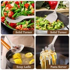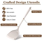 Versatile cooking utensils: the 8 pieces silicone kitchen utensils set comes with everything you need to get started cooking, includes a slotted turner, solid turner, slotted spoon, solid spoon, spatula spoon, soup ladle, large spatula, pasta server, a value set perfect for sautéing, baking, mixing and serving Food grade silicone: made of premium food-grade silicone, won’t have reaction with food and beverage, cooking utensils set is odorless and won’t retain any colors, flexible silicone head protect your cookware surface from scratching, extend the life of all your pots and pans High temperature resistant: silicone cooking utensils is able to withstand high temperature up to 446℉ (230℃), no need to worry about the melting issue when cooking, silicone handle offer a comfortable grasp and prevents the transfer of heat during cooking, bringing a better insulation performance One piece & No gaps: featured with sturdy seamless one-piece construction do not have gaps, would not come apart or crack, each cooking utensils come with a stainless-steel core, prevent the kitchen tools from bending or deformation, enhancing the durability and toughness Easy to clean and storage: these silicone utensils are easy to wash, you can release your hands easily and just need to toss these kitchen tools in the dishwasher, just takes a few seconds to wash off any grease or oil, each handle has a small loop for easy hanging and store, without occupying too much space