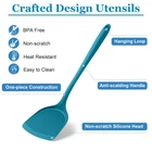 Versatile cooking utensils: the 8 pieces silicone kitchen utensils set comes with everything you need to get started cooking, includes a slotted turner, solid turner, slotted spoon, solid spoon, spatula spoon, soup ladle, large spatula, pasta server, a value set perfect for sautéing, baking, mixing and serving Food grade silicone: made of premium food-grade silicone, won’t have reaction with food and beverage, cooking utensils set is odorless and won’t retain any colors, flexible silicone head protect your cookware surface from scratching, extend the life of all your pots and pans High temperature resistant: silicone cooking utensils is able to withstand high temperature up to 446℉ (230℃), no need to worry about the melting issue when cooking, silicone handle offer a comfortable grasp and prevents the transfer of heat during cooking, bringing a better insulation performance One piece & No gaps: featured with sturdy seamless one-piece construction do not have gaps, would not come apart or crack, each cooking utensils come with a stainless-steel core, prevent the kitchen tools from bending or deformation, enhancing the durability and toughness Easy to clean and storage: these silicone utensils are easy to wash, you can release your hands easily and just need to toss these kitchen tools in the dishwasher, just takes a few seconds to wash off any grease or oil, each handle has a small loop for easy hanging and store, without occupying too much space
