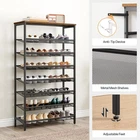 8-Tier Shoe Rack, Large Capacity Shoe Shelf, Stable and Sturdy The 8-tier shoe rack from will become a shiny star that is always captivating in your room. In addition to displaying shoes for the whole family's shoes, the multifunctional shoe rack works as a kitchen shelf to organize kitchen supplies, or as a corner shelf to decultter the living room's mess. Plus, mesh shelves effectively avoids moisture and allow the breathability. Each shelf can be set in a flat or angled way according to personal preferences to optimize the use. Specifications Color: Rustic Brown Material: P2 Particleboard and Metal Product Size: 29.5 x 11.8 x 53.9 inch Product Weight: 28.6 lb Load Capacity of Top Shelf: 66 lb Load Capacity of Mesh Shelf: 44 lb Package Contents: 1 x Shoe Rack 1 x Accessory Kit 1 x Instructions Huge Life Helper: Sized at 29.5"Lx 11.8"W x 53.9"H, the shoe rack is perfect for front door entrance, living room, bedroom, closet, dormitory, apartment. The shoe rack extends the vertical space while occupying little floor room Angled or Flat? You decide it. Spacious and open metal shelves at the height of 7 inch easily handles the extensive shoes collection, purses at a flat or slanted angle. The rising lip prevents the shoes sliding off. Just remove one of the shelves. You won't struggle to put high heels and winter boots XXL Shoe Rack: Flats, sneakers and boots are crammed in a closet? No place to put family's shoes all year round? This 8-layer shoe rack completely solves your problem, and is wide enough to holds up to 20+ pairs of shoes. It makes a huge difference and renews the messy hallway All-metal Shelves: The large-capacity shoe organizer is constructed with high-quality particleboard and metal mesh shelves, providing long-lasting performance and strength even though heavy items are put on. The top plate supports up to 66 lb and the shelf supports up to 44 lb. No aging, no bowing is exactly what you expect Easy-peasy Assembly: Easy to set up in several steps. With the detailed instructions and clearly numbered parts, it takes no time to assemble the shoe rack. The supplied anti-tip accessory imparts the added security, so you don't have to worry about kids running around