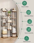 Specifications: - Color: Rustic Brown and Black - Material: Particleboard, Steel - Product Size: 11.8"D x 10.4"W x 53.2"H (30 x 26.5 x 135 cm) - Product Weight: 14.3 lb (6.5 kg) - Max. Static Load Capacity of the Top Surface: 66 lb (30 kg) - Max. Static Load Capacity per Fabric Shelf: 22 lb (10 kg) Package Contents: - 1 x Shoe Rack - 1 x AntiTip Kit - 1 x Accessory Kit - 1 x Instructions Notes: - For safety, be sure to secure the product to the wall with the included anti-tip kit. - The max. static load capacity of the top board is 66 lb, that of each fabric shelf is 22 lb. Do not exceed its weight limit. [Space Saving Shoe Rack] This vertical shoe rack is 11.8"D x 10.4"W x 53.2"H, which is very suitable for use in small spaces. It makes full use of vertical space and occupies a very small space, which is very suitable for entryway, living room, bedroom, corridor and garage, etc [Multiple Storage Options] This narrow shoe storage could be used as a plant stand, photos and so on. It has several purposes to use. The hooks on both sides of the shoe rack can hang umbrellas, wallets or other items [DIY to Which You Like] The corner shoe shelves are adjustable, if you get two or more shoe racks, you could also consider designing them as you like [Stable and Steady] The shoe tower organizer is made of excellent particleboard. Each partition can easily bear the weight of 11 lb, and the large partition at the bottom helps the shoe rack stand firmly on the ground [Easy Assembly] Each part is clearly labeled and the instruction manual is comprehensible to eliminate the guesswork. You won’t go wrong