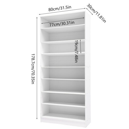 8-Tier White Shoe Cabinet Open Shoe Rack Storage Organizer for Entryway Closet Description In our daily life, a neat and organized space can make us feel relaxed and happy. The feeling of coming home starts from entering the door and changing shoes. Look at our shoe storage cabinet made of high-quality PVC wood plastic board and mesh foam with a PVC co-extruded layer process. With its large capacity and elegant appearance, this item makes you feel warm, giving you a sense of pleasure and comfort from the moment you walk in the door. Key Features Build to Last: It is made of high-quality PVC wood plastic board and mesh foam with a PVC co-extruded layer process, which makes it strong and durable, not easy to deform, so you can use it with peace of mind in your daily life. Large Capacity: With eight tiers of shoe storage and room for 4 pairs of regular shoes per tier, this product is big enough for a family's shoe storage needs. Strong Load-bearing Capacity: The premium materials and rectangular structure allow to withstand up to 110.23lbs without collapsing, giving you a piece of mind. Shoe Storage Assistant: It cleverly integrates shoe storage into life, placing it at the doorway to store your messy shoes, making it pleasing to the eyes as soon as you open the door, and bringing you an organized lifestyle. Thoughtful Design: The open design allows you to see your shoes at a glance while still allowing for effective ventilation. You can also change the tier spacing by removing the tiers to fit different sized shoes and items. Space Saving: It utilizes vertical space wisely and has a small footprint(31.5*11.81 inches), so this cabinet won't take up much space in the room. Elegant Appearance: The sleek white finish and simple structure create a touch of elegance and casualness. It blends well with a variety of interior styles, bringing stylish functionality and aesthetics to your space. Easy to Install: A full range of accessories, a detailed English assembly diagram and simple construction allow you to install and use quickly. Hassle-free Cleaning: Thanks to its smooth surface and simple structure, you can easily clean it with water and a rag (not included). Ideal Gift : Beautiful appearance and practical function make it a nice housewarming gift for your family and friends. Details Practical Gloves: They make installation quicker and protect your hands from scratches. Sandpaper: It allows you to grind the surface of the product to make it polished and smooth. Mesh Foam Non-slip Pads: They stabilize that product well and won't scratch the floor. Application It can be used in the foyer, living room, porch, corridor, and other places for storing shoes, trainers, sandals, sundries, towels, flower pots, and so on. Specifications Material: PVC Wood Plastic Board, Mesh Foam Process: PVC Co-extruded Layer Style: Modern Color: White Mount Type: Freestanding Product Care Instructions: Wipe with Damp Cloth Shape: Rectangular Assembly Required: Yes Number of Tiers: 8 Number of Compartments: 8 Number of Shoes Applicable Each Tier: 4 Pairs Overall Load-bearing Capacity: 50kg/110.23lbs Gross Weight: 17kg/37.48lbs Net Weight: 16kg/35.27lbs Each Compartment Size(L*H): 77*19cm/30.31*7.48in Overall Product Size: 80*30*178.7cm/31.5*11.81*70.35in Package Size: 95*46*15cm/37.4*18.11*5.91in Package Included 1*Shoe Storage Cabinet 1 Pair*Gloves 1*Sandpaper 1*English Assembly Diagram 1*Schematic Diagram of Sandpaper Grinding All Accessories for Assembly Notes Please confirm the installation dimensions before purchasing. Please note that this product does not include display items such as shoes. Please note that the number of shoes that can be stored will vary depending on the size and height of the shoes. Please wear the glove (included) when assembling. Please allow the slight color difference caused by the shooting light and 1-3cm error due to manual measurement, and make sure you do not mind before you order. Payment Delivery details Terms of sales About us Contact us Payment We accept ebay payment 。 Fees such as import duties, taxes are not included in the item price or shipping costs. These charges are the buyer's responsibility. Delivery details Shipping: 2-9 working days to: USA Terms of sales We maintain high standards of excellence and strive for hundred percent customer satisfaction. Feedback is very important to us. We hope that you contact us immediately before you give neutral or negative feedback, so that we can address your concerns. It is impossible to address issues if we do not know about them! About us Your satis faction is our ultimate goal. We work hard to earn your trust and future business. Our certified technicians have tested each item before shipping. The unit comes with 1 year limited warranty on all manufacturing defects. a) If you receive a defective item, you may return it or ask for a discount. Please contact us within 14 days after you receive the package. b) What you returned must be intact and in its original packaging as re? u. Customer is responsible for shipping costs of the returned item. c) We will cover the cost of shipping back t with the shipping rate indicated in the registration page. We will send you a new unit or refund the full payment you paid. Thank you. Contact us Business Hour Business Hour: Monday To Friday: 8:30 AM to 5:00 PM (Beijing China time) Due to time zones, our reply to your questions may not be immediately. But within above working time, we will reply your email within 24 hours. If it's non-workdays, please kindly be patient and wait till Monday. Please contact us with ebay message. Please feel free to contact us if you have any questions. Monday To Friday: 8:30 AM to 5:00 PM (Beijing China time) Due to time zones, our reply to your questions may not be immediately. But within above working time, we will reply your email within 24 hours. If it's non-workdays, please kindly be patient and wait till Monday. Please contact us with ebay message. Please fe