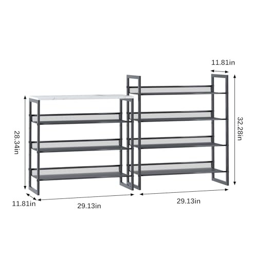 Return Policy Fast Delivery Trusted seller Shoe Rack 8 Tiers Shoe Storage Organizer,Large Capacity Storage Rack with White Tabletop,Adjustable Metal Shelf Stackable Shoe Shelf for Entryway Hallway Living Room Closet Product Description 【SIMPLE & GENEROUS DESIGN 】This shoe rack is composed of steel shelves with white faux marble wooden tabletop.This shoe rack can be split into two 4-tier shoe racks. Depending on your preference, you can split it into two shoe racks and place them separately. 【SAVE SPACE】The size of this Freestanding shoe rack is 29.13 x 11.81 x 60.71 Inches, and each shelf can hold 3-4 pairs of shoes. It covers a small area and has large storage space, which makes more space for you and gives you a cleaner and orderly room. 【ADJUSTABLE SHELF】Another feature of our storage shelves is that each shelf is adjustable. This shelf can be adjusted to slant or flat depending on your preferences and the items placed. It can meet your diverse needs. 【DURABLE MATERIALS】Each layer of this storage rack is made of high-quality steel mesh partition, mesh dense, even if placed high heels, heel will not fall off. In addition, our storage shelves also have a particularly thoughtful design,When the shelf is lying flat, a raised edge on one side prevents items from sliding off. 【MULTI FUNCTIONAL 】This storage rack can not only be used in the corridor as a shoe rack, but also can be applied to the closet for storage. It can put in the study to place books, photos and magazines, and also can be used in the living room sofa side to place photo frames, decorations, vases, bags, plants and so on. Shipping Returns Payment Shipping Shipping is FREE to all addresses other than APO/PO boxes in the lower 48 states. All our stock ships from US-based warehouses. Shipped via USPS or UPS (depending on location and package weight) Unless stated otherwise, all orders will ship within 24-72 hours of your payment being processed. Check our feedback to see the great reviews of FAST shipping we offer. Returns Seller does not accept returns Payment We currently accept payment via eBay managed payments only. Once payment is cleared, we will dispatch your shipment within 1-3 business days. Please refer to the "Shipping" tab for more information regarding shipping speed to your destination.