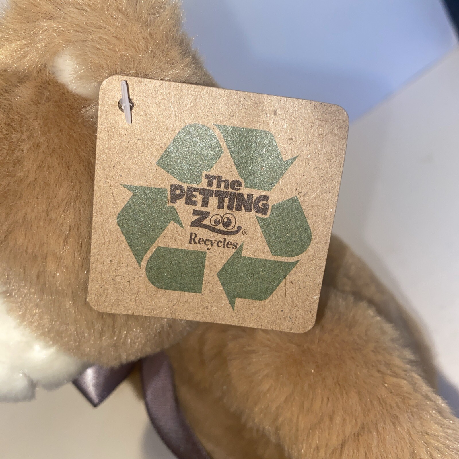 The Petting Zoo Plush Stuffie 9" Brown Bear Soft Cuddly Satin Bow NEW With Tag