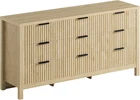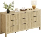 Product Description About this item Elegance combined with modernity: This chest of drawers features a warm oak veneer and distinctive fluted panel, along with refined wide metal handles. It seamlessly merges minimalist style with elegance, delivering a piece that is both fashionable and functional for any bedroom Built for Durability and Safety: Constructed from robust and easy-to-clean MDF, this drawer dresser for bedroom ensures stability and ease of maintenance over time. It comes with an anti-tip device and stable feet, adding extra safety to its design Generous Storage Space: The wood dresser offers 9 smooth-gliding drawers, ideal for storing clothes, accessories, and cosmetics. The spacious top surface allows for displaying personal items like photos or artwork, enhancing the living space's aesthetic and functionality Multi-functional: Serving as both a clothing organizer and a dresser tv stand, this piece easily adapts to various spaces like bedrooms hallway or living areas, meeting diverse storage and display needs with elegance Quick Assembly: With a detailed manual and numbered parts, assembling this 9 drawer dresser is straightforward, even for beginners. Using power tools can speed up the process, getting your furniture ready in about 2 hours Modern Chest of 9 Drawers Large Storage Space Product Details Wide Armrests Indulge in the plush comfort of our generously sized armrests, turning every drawer interaction into a delightful experience. Anti-Tip Restraints No more worrying about tipping—just enjoy the comfort and security! Silk-Smooth Drawer Glides Experience seamless and swift drawer movements that glide open and shut with effortless elegance. Easy-Care Surface Revel in the ease of maintaining a pristine surface; spills are no match for this durable, waterproof top that wipes clean effortlessly.
