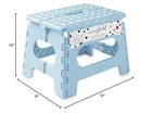 Sturdy, lightweight design: Always have a stool handy with this small but mighty folding step stool from . Crafted from heavy duty plastic and weighing just over 2 pounds with a maximum standing height of 9", this stool easily supports up to 300 pounds. Textured, grip-dot surface: The unique design of 's folding step stool includes a stylish and textured, grip-dot, no-slip step surface, making this stool safe to use for adults and alike. The step surface measures 11" W x 8.5" D, providing plenty of footing space. Anti-skid foot pads: Equipped with anti-skid foot pads, this folding step stool is safety certified and meets all ANSI III requirements Portable with handle: The convenient carry handle allows you to take this stool everywhere. Great for the kitchen, bathroom, closets, garage, and RV's to easily access out-of-reach items. Folds easily for storage: Folds nearly flat for easy storage. under a bed, between counters and appliances, in a closet, or almost anywhere else. When flat this stool measures 1.5" D.