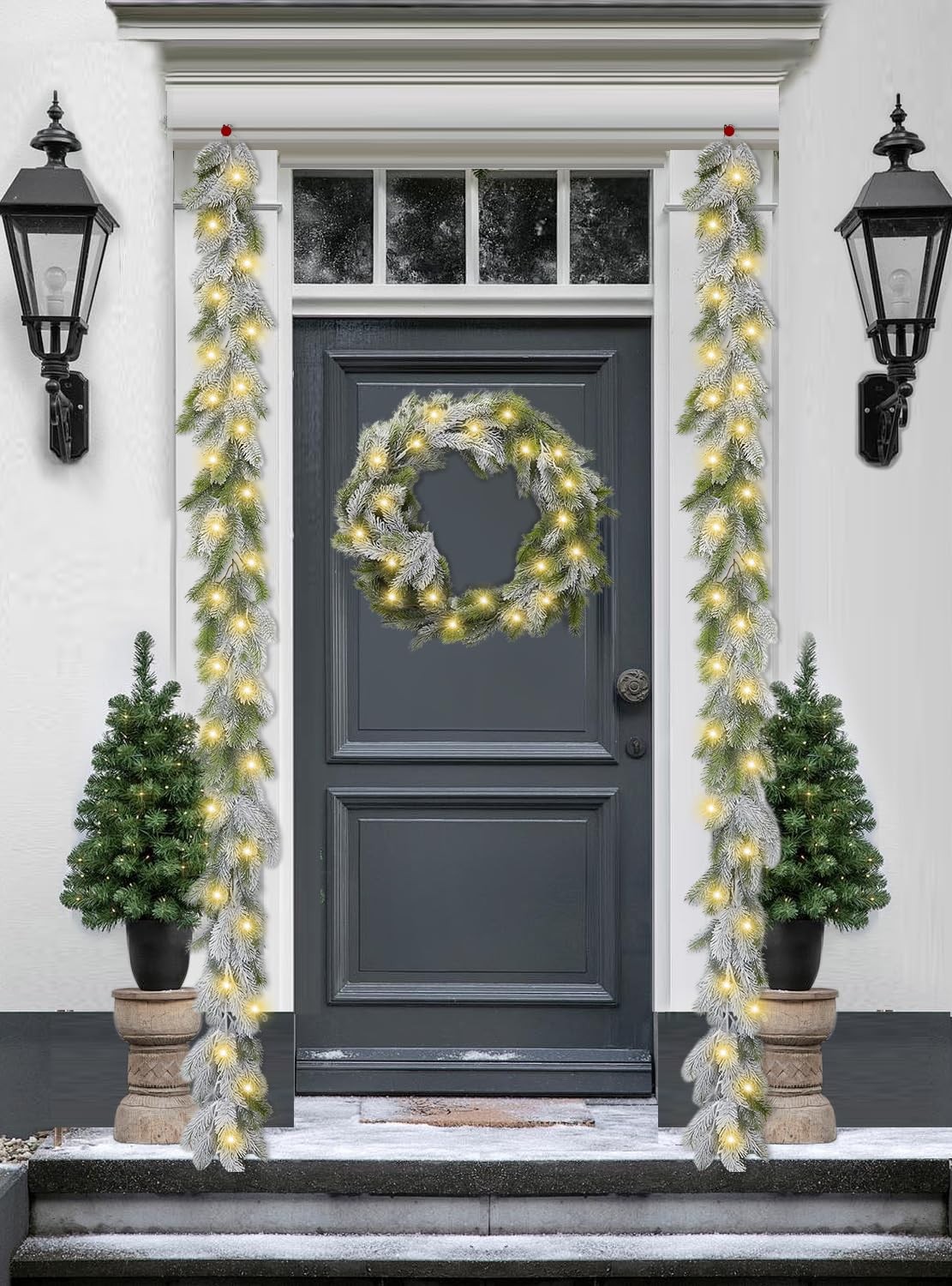 Christmas Garlands 02 snow 【Five Style Christmas Garlands】For Christmas 2024, we have prepared 5 styles of Christmas garlands: Pine Needle, Snow-Frosted Pine Needle, Premium Norfolk Pine, Cypress Leaf, and Smoky Pine Needle. Each garland is made from high-quality, realistic materials that are vibrant in color, eco-friendly, and durable. Additionally, each garland comes with an 8-mode LED light set. Mix and match these styles to create distinctive and charming decorations for your home. Don’t miss out—try them now! 【Realistic Design】Our Christmas garlands feature a design inspired by natural green pine needles, offering a lifelike appearance and texture. Most importantly, its vibrant color stays fresh and won't fade or rot, making it reusable. It brings the beauty and vitality of nature to your home and garden decor, enhancing the festive spirit of Christmas! 【Material Upgrade】The upgraded Christmas garlands comes in five styles and is crafted from PE soft plastic material. This makes them eco-friendly, flexible, and elastic. The metal wire stems allow you to bend them into any desired shape, making them perfect for decorating various areas and achieving a flawless look. These garlands are waterproof and durable, standing up to sun and rain for long-term use. 【Free 8-Modes LED Lights】Each Christmas garland comes with a high-quality battery-operated LED light set (batteries not included). The LED lights feature 8 different flashing modes that you can switch between, creating various festive atmospheres. These lights will ensure your home and garden decorations shine brightly, even at night! 【Versatile】Our Christmas garlands are the perfect decoration for both indoor and outdoor settings during the holiday season. Simply drape them over tables, mantelpieces, front doors, living rooms, windows, walls, fireplaces, or any other spot you desire, and they will become a stunning centerpiece. The Norfolk natural touch garlands are ideal for Christmas decor, weddings, stages, living rooms, bedrooms, offices, hotels, restaurants, birthdays, supermarkets, and more.