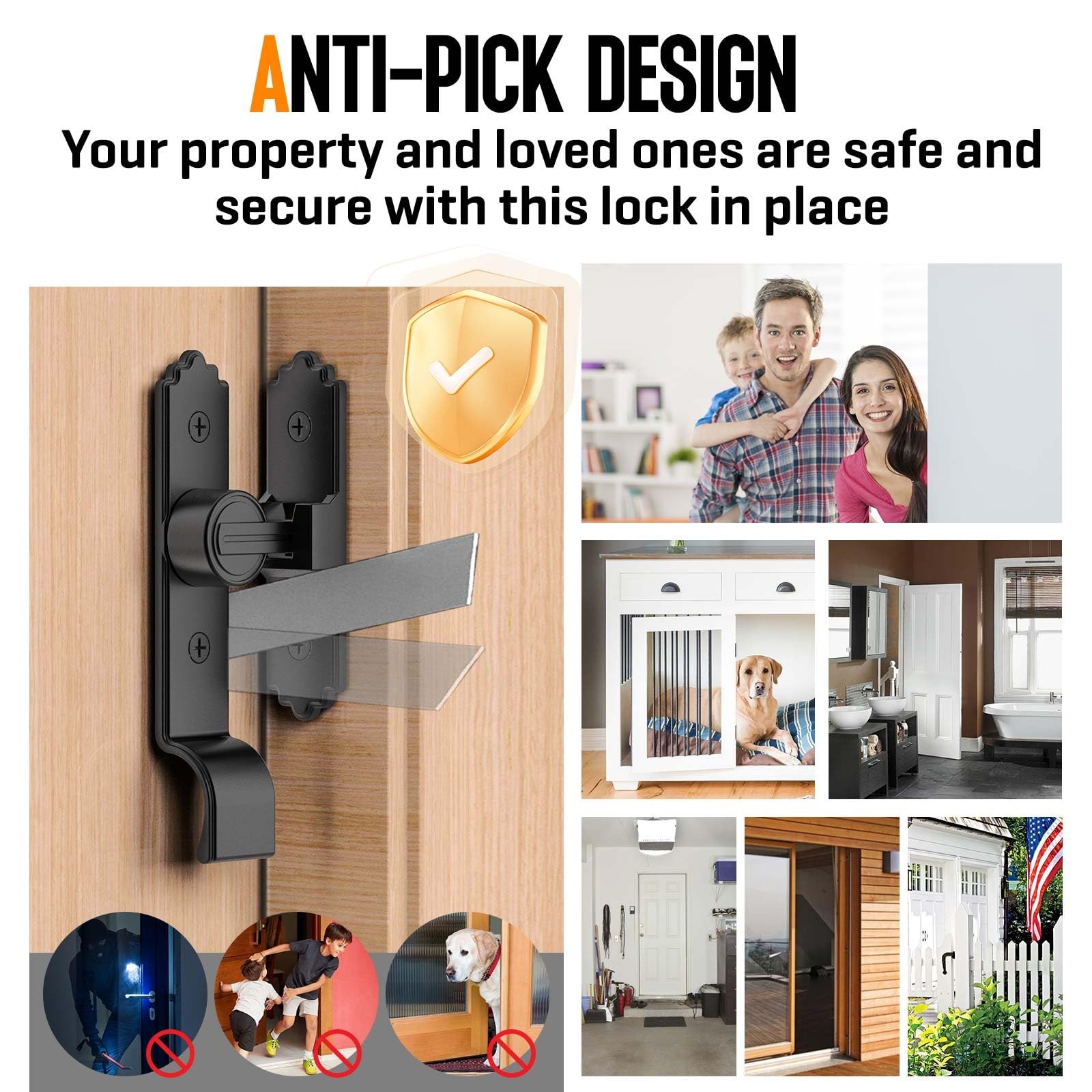 90/180 Degree Barn Door Lock, Gate Lock Latch with Handle, Sliding Barn Door Lock Latch for Bathroom, Bedroom,Cabinet, Garden, Garage, Outdoor QUALITY MATERIALS: The flip barn door lock hardware with handle is made from zinc alloy with multi-layer coating for long life and effective insulation from oxygen in the air. Durable and corrosion resistant to ensure longevity and reliability. INNOVATIVE UPGRADE: Heavy duty 90 degree barn door lock adds the functionality of a door handle. Security door locks provide security while greatly enhancing convenience and utility to ensure your home is safe. No need to worry about pets or small children accidentally opening the door and compromising your privacy. EASY TO INSTALL: Slide latch with handle fits either the left or right side of the door and comes complete with mounting hardware. Only 4 steel screws are required to secure the mounting hardware, making it easy to install and maintain (see illustration for detailed installation procedures). WIDE USE: Heavy duty 90 degree sliding barn door locks are suitable for home front doors, bedroom doors, garage doors, garden doors, bathroom doors, closet doors, kitchen doors, office doors, hotel doors and so on. PACKING LIST: The set contains 1 x door lock with handle, 8 x screws, 4 x plastic expansion tubes. Please check the size of the product carefully before purchase