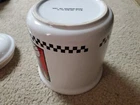 90s Bugs Bunny Vintage Cookie Jar And Looney Tunes Diner Mugs Boxed No chips or cracks. Excellent Condition on cups amd cookie jar. Good size cookie jar as well. Still very vibrant red colors on it. Diner soup mugs never used.