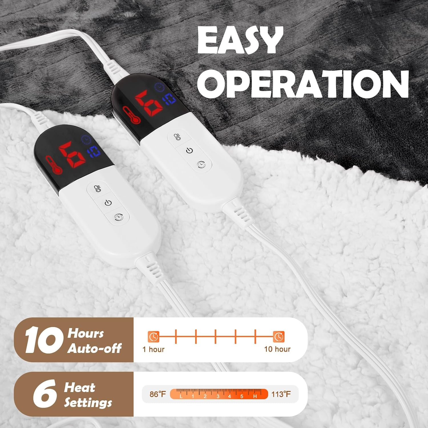 84x90 Heated Electric Blanket Queen Size Dual Control 10 Heat Settings