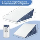 Bed Wedge After Surgery, Cooling Memory Foam Pillow for Back Support and Leg Elevation, Triangle Pillow for Acid Reflux & Heartburn & GERD & Snoring, Foldable Bed Wedge Pillow for Sleeping, 9 & 12 Inch Adjustable Wedge Pillow for Back Pain, Cooling Memory Foam Pillow Wedge for Post Surgery, Acid Reflux and Snoring, Navy & White Adjustable Bed Wedge Pillow for Sleeping, 7 in 1 Body Positioner Bed Wedge Pillow for Sleeping, Acid Reflux Pillow, GERD, Anti Snore Sleeping Pillow, Heartburn Bed Wedge Pillow for Sleeping, 9&12 Inch Adjustable Bed Wedge Pillow for After Surgery, 7-in-1 Memory Foam Triangle Wedge Pillow, Relieve Acid Reflux, Gerd, Snoring, Foldable A wedge pillow is an orthopedic pillow that can be used to help sleepers with various problems. One of the most common uses of a wedge pillow is to help reduce snoring and symptoms of obstructive sleeping. Elevating the upper body may also help sleepers who suffer from acid reflux, as gravity helps keep stomach acid from rising up the esophagus. The triangular shape of a wedge pillow keeps sleepers at an incline throughout the night. The height of the wedge pillow can be adjusted to 9 or 12 inches high. You can use one to prop up their head and neck, or support their back and shoulders when sitting up in bed. They can also be used to elevate the legs and help improve circulation. Back sleepers and side sleepers alike have found wedge pillows to be beneficial, as these pillows can help relieve pressure on the lower back, neck, and shoulders. Wedge pillows are often recommended for pregnant women to provide additional support and pressure relieving. Our wedge pillow is made of memory foam and sponge, which helps it conform to the curves of the body, maintain a stable shape, and provide a certain degree of support for the sleeper. [Upgraded & Certified Wedge Pillow]: Our bed wedge pillow is CertiPUR-US and Oeko-Tex Standard 100 certified, which ensures that the foam and pillowcase are safe for your health. The wedge top is made of 40D slow-rebound memory foam and is infused with cooling gel particles that help heat escape from your body, the bottom is 25D high-density foam. This design has just the right amount of firmness and softness to make our wedge pillow headboard comfortable while providing great support [7-in-1 Adjustable Wedge]: Foldable design, available in 9-inch and 12-inch heights, for elevating the head and upper body, supporting the back, elevating the legs. Relieves muscle tension for a variety of needs. Use the lower incline to relieve acid reflux, heartburn, snoring, and GERD while sleeping, or use the wedge pillow to support the back while reading or relaxing. Wedge pillows for seniors can also be used to elevate the legs, knee pain, reducing pressure and improving circulation [Enhance Sleep Comfort]: Aches and pain often robs you of a good night’s sleep. Head, neck, knees or leg elevation , helps circulation. Incline pillow ideal for people recovering in bed after surgery, people who need to sleep on their backs & can't lie flat, have to sleep higher, or sleep upright to keep their backs supported. Such as back surgery, breast, abdominal surgery, neck and back pain, ect. Height and angle can be adjusted as needed (20°/30°/60°/90°); Size (22 x 24 x 9 or 22 x 22 x 12) [Utility Pocket & Soft and Breathable & Washable Cover]: Our bed wedge pillow cover is made of 260 gsm knit air layer fabric with a delicate jacquard crochet pattern. It's very comfortable and skin-friendly, and it's thick and durable. This pillowcase features a double zip closure, easy to remove and machine washable. 2 side pockets are perfect for storing glasses, phones, or other small items; easy to carry with handle. It makes our adjustable triangle wedge pillow an ideal choice for daily use [Multi-Functional Support]: Embrace comfortable memory foam bed wedge pillow for headboard. It can also be used for daily rest and relaxation after you have regained your health after surgery. Whether you're lying down or sitting up in bed, reading, working, study, and watching TV on the sofa. Good support pillow whether you are pregnant or postpartum. Relaxing the spine is now, come invest in this memory pillow! Great gifts for your husband, wife, seniors, father, mother, elderly, and so on [Memory Foam Pillow Care]: Our orthopedic wedge pillow is vacuum packed for optimal shipping. Please allow 24-48 hours for the pillow to fully expand to its original shape after unpacking. This ensures maximum comfort and support. For best results, place the pillow in a well-ventilated area during this time. Maintain cleanliness by regularly washing the removable covers. Sleep pillow, wedge pillows for seniors [Full-Marks After-Sales]: Your affirmation is our greatest motivation. We listen carefully to the suggestions of each customer, and constantly improve the quality of products and services. Our customer service team is available 24/7 to answer any questions or concerns about our wedge pillow, so no matter if you have any questions or need help, please reach out to us for prompt and efficient resolution