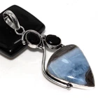 925 Silver Plated Owhyee Blue Opal Black Onyx Long Pendant Size 2.5" JW