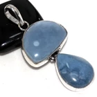925 Silver Plated Owhyee Blue Opal Ethnic Long Pendant Jewelry Size 2.3" JW