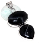925 Silver Plated-Banded Black Onyx Ethnic HandmadeLong Pendant Jewelry 2" JW