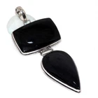 925 Silver Plated-Black Onyx Ethnic HandmadeLong Pendant Jewelry 3.4" JW