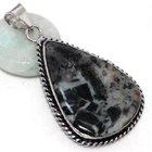 925 Silver Plated-Moss Opal Ethnic Gemstone Handmade Pendant Jewelry 2" JW