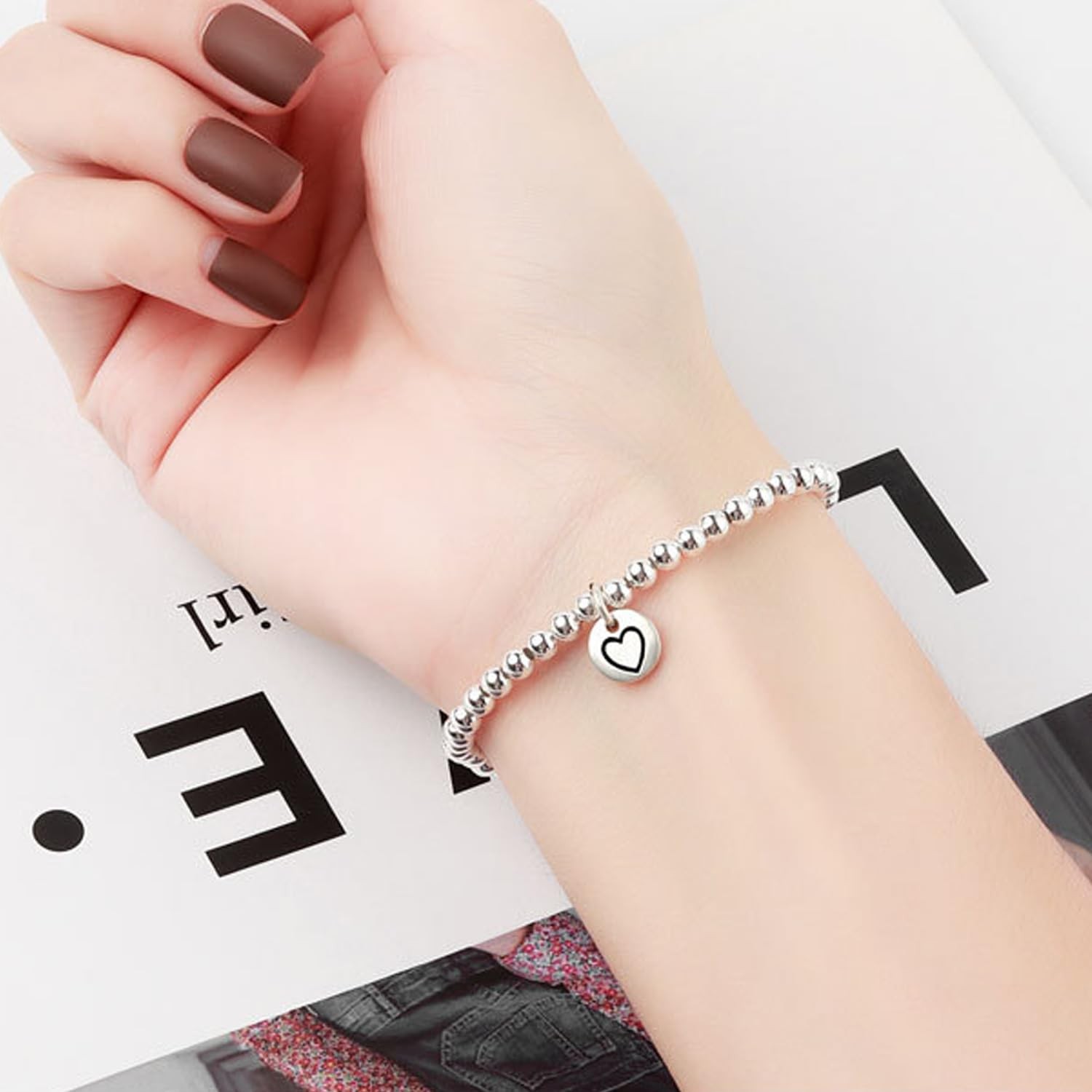 925 Sterling Silver Handmade Strand Chain Bracelet 4mm Bead Ball Stretch Bracelets for Women Silver Jewelry Gift Product Features: Classic style: This 925 sterling silver 4mm bead bracelet adds a touch of magnificence to your daily look,wrap your wrist with this elegant sterling silver beaded chain bracelet,each bead is individually strung by hand, creating a timeless classic that remains a classic to this day. Material: The material is handcrafted from 925 sterling silver to make your jewelry shine, hypoallergenic and nickel-free,is a great choice for individuals with very sensitive skin. Occasion: Suitable for wedding, engagement, prom, dinner party, birthday party, pageants any occasion you want to be more charming. Perfect Gift: It is the perfect gift for your husband, wife, mom, girlfriend, or best friend. It is strong and stylish and meant for everyday wear. Never Outdated: These silver bracelets are never goes out of style, you can match them as you like, and suitable for daily wear and any special occasion