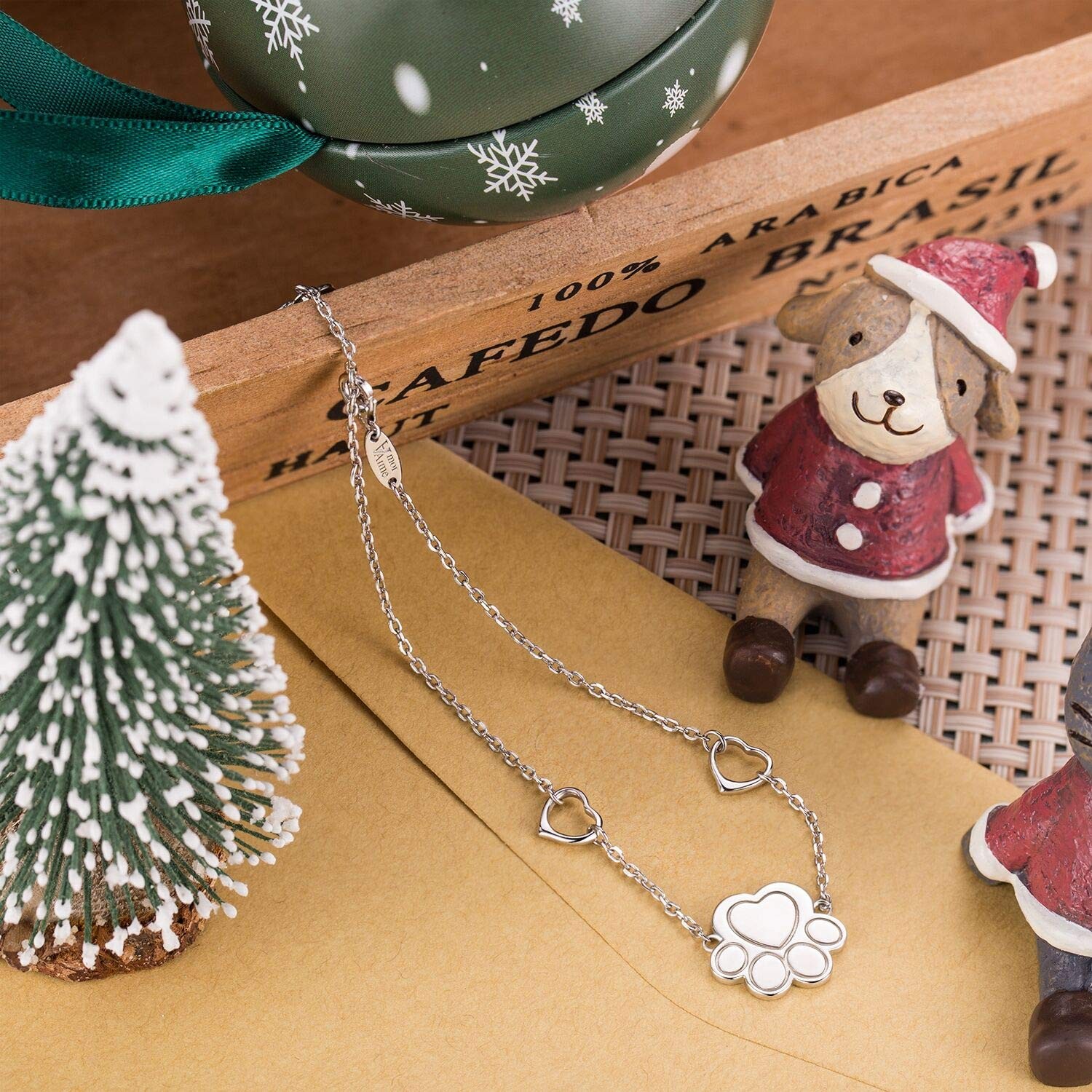 925 Sterling Silver Bracelet Dog Cat Paw Print of Love Heart Charm Adjustable Link Bracelets for Women for Pet Lover Product Features: [ Heart Bracelet ] Animals like cats and dogs are always cute,if you’ve had the joy of sharing a loving bond with such a tiny lovely friend, you will believe they do leave paw prints on your hearts forever. Now, you can let the love of your favorite pet going into your heart when you wear this pet lover bracelet. This charm bracelet is a great way to show your love for your devoted furry friend and add some animal flair [ Material and Measurement ] It is designed with two small hearts flanking the center pet dog paw print. Crafted in solid 925 sterling silver. Fastened with a sterling silver lobster clasp. Extension design 7+1.4 inches to fit different wrist sizes. Show everyone that you love dogs or cats with this gorgeous fashion paw print bracelet [ Paw Bracelet ] This love paw bracelet every day to remind yourself about the joy and love that your lovely pet gives to your life. It is intended for mom, wife, daughter, sister, friends or anyone who love cute dogs or cats 【 Maintaining Sterling Silver Jewelry 】 All of our jewelry is 925 sterling silver. Use our silver polishing cloth or any soft nonabrasive cloth to restore shine.For safe keeping, keep the jewelry stowed away in a cool, dry place 【 Nice Package 】The 925 sterling silver cross bracelet for women is presented inside an elegant blue box with a soft cloth, ready to give to your love, such as family members, friends or just for yourself!