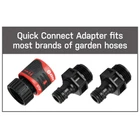 The unique thumb control adjusts the water flow for each pattern as well as on/off. Seven options – jet, shower, mist, soaker, cone, center and flat – meet a range of watering needs. Designed for easy use and conserving water when watering from one plant to the next, this nozzle also eliminates fatigue in the hand and wrist that constantly squeezing a trigger can cause. Zinc alloy construction provides durability, and the soft rubber coating adds additional protection for a longer life. The watering head is easy to remove for rinsing when needed. Easily change watering patterns and flow to suit your watering project. This sturdy, reliable and easy-to-use garden nozzle makes watering a pleasure, for all your watering chores. Easy-to-use thumb control adjusts water pattern flow and off/on 7 pattern flow control: jet, shower, mist, soaker, cone, center and flat Ergonomic design lessens hand and wrist fatigue Nozzle head is removable for easy rinsing Zinc alloy construction for durability and longer life New honeycomb design provides non-slip grip in wet conditions Quick connect starter set fits all standard U.S. garden hoses. The secure twist-and-lock mechanism prevents accidental disconnection, water stop feature allows tool changes with the water on.