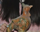Here is an 9.8" Old China Dynasty Tang sancai ceramics porcelain Luck animal bird Statue , As you can see the image, It is in good condition, and was created by skilled craftsmen in traditional style with fine handcrafts . This is a great piece of valuable collection, a valuable personal alter or a very good present. the handwork is very fine with incredible detailing. Don't miss out this chance to get it .Wish you good luck! Size: Height: 9.8 inch .Long: 4.8 inch . breadth: 2.8 inch Size: Height: 24.5 cm .Long: 12 cm . breadth:7 cm Weight: 1.8 KG----included the weight of packing materials Materials: Tang sancai ceramics porcelain Condition: Good condition Origin: China Shipping cost by EMS Express Mail ( 7------15 days ) : $Free