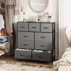 9-Drawer Dresser, Fabric Storage Tower for Bedroom, Hallway, Closets, Tall Chest Organizer Unit with Textured Print Fabric Bins, Steel Frame, Wood Top, Easy Pull Handle, Dark Grey Multifunction Tower: This fabric dresser for bedroom is ideal for wherever you want to keep clutter under control, such as bedrooms, playrooms, entryways; matches perfectly with other storage organizers. Roomy Storage Space: The 9 foldable deep drawers are so spacious that they provide endless organizational possibilities. Wooden top is great for lamps, clocks, glasses and other daily essentials, keeping them in your reach. Sturdy and Durable: Strong steel frame and water-resistant wood top offer stable support and ensure years of use; 4 adjustable plastic feet can protect your floor from scratches and are also designed for uneven ground. Safe for Your Family: Feel free to place chest of drawers anywhere; the anti-tipping accessories included can prevent incidents; the non-woven fabric is breathable and harmless, suitable for teens and adults. Overall Dimension: The fabric dresser measures 39.6" L x 11.8" W x 40.2" H. The storage tower comes with instructions and all hardware needed for installation, easy to assemble.