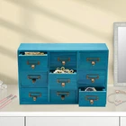 Specification Material: Wood and Metal Color: Blue Style: Rustic Process: Painting Shape: Rectangular Assembly Required: No Mounting Type: Tabletop Number of Drawers: 9 Each Drawer Size: 11.4*9.5*6.3cm/4.5*3.7*2.5in Drawer Door Height: 7.4cm/2.9in Product Size: 38*9.5*26cm/15*3.7*10.2in Package Size: 40*12*28cm/15.75*4.72*11.02in Each Drawer Load Capacity: Within 1kg/2.2lbs Net Weight: 2.5kg/5.5lbs Gross Weight: 3kg/6.6lbs Package Included 1* 9-Drawer Storage Cabinet 9 Drawers Apothecary Cabinet Case Wooden Desk Drawer Organizer Herb Storage Box Description Description Cleanness and tidiness are a good attitude towards life and will put you and your family in a good mood, our 9-drawer storage cabinet is made of high-quality material, has sufficient storage space, has a beautiful and practical design, and allows you to neatly and efficiently organize your belongings, and makes you feel organized and relaxed. Say goodbye to a cluttered desk and enjoy a neater, more efficient life! Key Features Sturdy and Durable: It is made of high-quality wood and metal with a painting treatment, which is eco-friendly, odorless, anti-corrosion and rust-resistant , ensuring its beauty and a long time use. Excellent Organizer: This set of 9 drawers can sort and store data cables, kinds of medicinal herbs, and other daily essentials to create a cleaner, tidier office and home environment. Meanwhile, the top platform allows you to place some keys, and chargers to make full use of your space. Exquisite and Rustic: The blue color scheme combines a minimalist design with clear wood grains to create a minimalist aesthetic and reveal a strong retro charm permeated with the flavor of time precipitation. Good Load Capacity: The thick wood and rectangular construction allow each drawer to hold up to 2.2 pounds, so you can rest assured that you'll be able to keep a variety of small items inside. Effortless Clean: Thanks to its smooth surface, simple construction, and closed dustproof design, you can wipe it clean with a damp rag. Installation-free : What you receive will be an already assembled product, so you can use it directly, which is very convenient and time-saving. Protective Package: We use bubble bags to package our product, designed to maximize protection from damage during shipping. Ideal Gift: Thanks to its practicality, it will make a fine gift for family, friends, and loved ones on Christmas, Father's Day, Mother's Day, birthdays, anniversaries, and holidays. Details Rounded Corners: The rounded edges are burr-free , which is comfortable to touch a nd can care for your skin. Metal Handles: Ergonomically designed metal handles allow you to pull drawer doors open or close with ease. Tag Slot: It allows you to place labels for the items, making it easier to reach items, and saving you time rummaging. Application It is suitable for placing in your living room, dresser, kitchen, office, etc., to store necklaces, earrings, bracelets, rings, crystals, cosmetics, perfumes, lipsticks, tea bags, espresso packets, sugar packets, keys, watches, receipts, credit cards, electronics, small cords, chargers, batteries, pens, letters, staples, tape holders, sewing needles, buttons, tool bits, small precision tools, herbal remedies, nutrition-related capsule/tablet bottles, apothecary jars, household medications and general small items. Specification Material: Wood and Metal Color: Blue Style: Rustic Process: Painting Shape: Rectangular Assembly Required: No Mounting Type: Tabletop Number of Drawers: 9 Each Drawer Size: 11.4*9.5*6.3cm/4.5*3.7*2.5in Drawer Door Height: 7.4cm/2.9in Product Size: 38*9.5*26cm/15*3.7*10.2in Package Size: 40*12*28cm/15.75*4.72*11.02in Each Drawer Load Capacity: Within 1kg/2.2lbs Net Weight: 2.5kg/5.5lbs Gross Weight: 3kg/6.6lbs Package Included 1* 9-Drawer Storage Cabinet Notes Please check the product size before purchasing. Please note that the log product is subject to wood knots, scabs, mineral threads, etc., but it's normal. Please make sure that you do not mind before purchasing. Please note that this product does not include keys and other storage items. Please allow the slight color difference caused by the shooting light and 1-3cm error due to manual measurement and make sure you do not mind before ordering. Payment Delivery details Terms of sales About us Contact us Payment We accept ebay payment 。 Fees such as import duties, taxes are not included in the item price or shipping costs. These charges are the buyer's responsibility. Delivery details Shipping: 2-9 working days to: USA Terms of sales We maintain high standards of excellence and strive for hundred percent customer satisfaction. Feedback is very important to us. We hope that you contact us immediately before you give neutral or negative feedback, so that we can address your concerns. It is impossible to address issues if we do not know about them! About us Your satis faction is our ultimate goal. We work hard to earn your trust and future business. Our certified technicians have tested each item before shipping. The unit comes with 1 year limited warranty on all manufacturing defects. a) If you receive a defective item, you may return it or ask for a discount. Please contact us within 14 days after you receive the package. b) What you returned must be intact and in its original packaging as re? u. Customer is responsible for shipping costs of the returned item. c) We will cover the cost of shipping back t with the shipping rate indicated in the registration page. We will send you a new unit or refund the full payment you paid. Thank you. Contact us Business Hour Business Hour: Monday To Friday: 8:30 AM to 5:00 PM (Beijing China time) Due to time zones, our reply to your questions may not be immediately. But within above working time, we will reply your email within 24 hours. If it's non-workdays, please kindly be patient and wait till Monday. Please contact us with ebay message. Please feel free to contact us if you have an